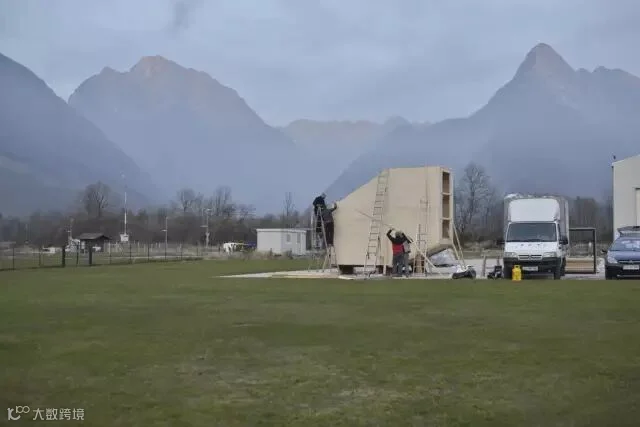 小屋所用的材料包括交叉复合木材、玻璃和铝面板,外部还用了钢索加固。主体并不是在现场搭建的,而是事先按照1比1在工厂模拟现场环境经过无数测试制作的,最后在空军直升机的支援下整体吊到山上进行固定。由于遇到极端天气,前后总共花了三次才最终完成安装。