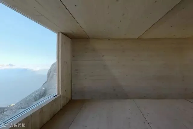 一个朝西南的大玻璃窗可以望向Peitlerkofel山峰,第二个玻璃窗朝南望向Heiligkreuzkofel山峰,最后是一个朝西的露台,向外挑出6米,提供240°观景视野,可以眺望奥特拉峰和南蒂罗尔地区。