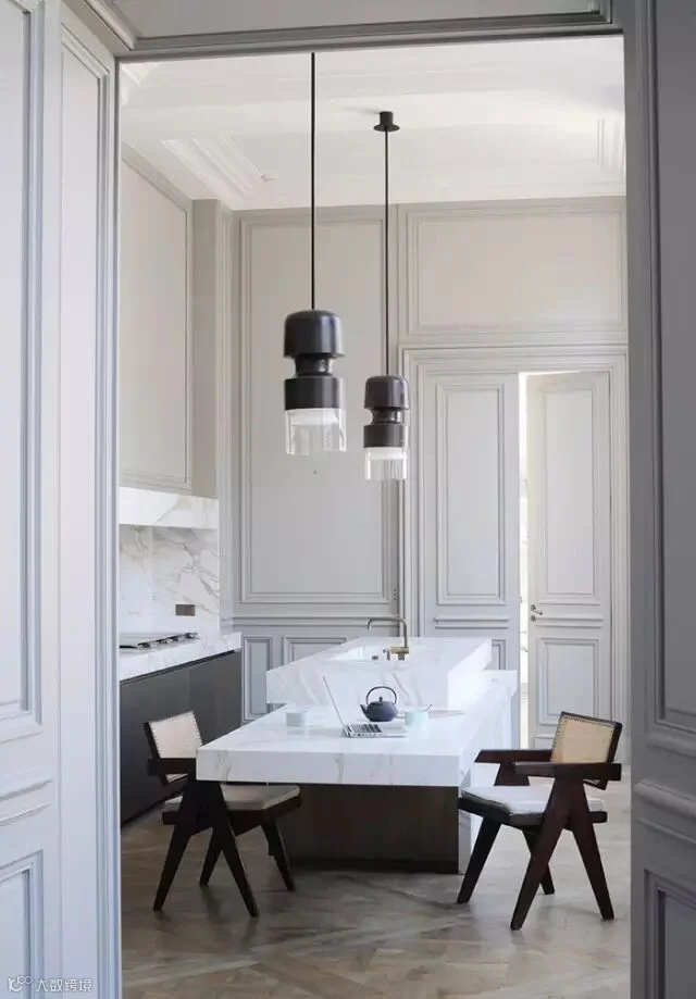 另外,如果房子不够宽时,传统欧洲住宅常见的墙裙(墙腰带设计)也是好的解决方式哦,它可以在视觉上拉伸空间延展度,现代很多住宅空间也常出现墙裙设计。