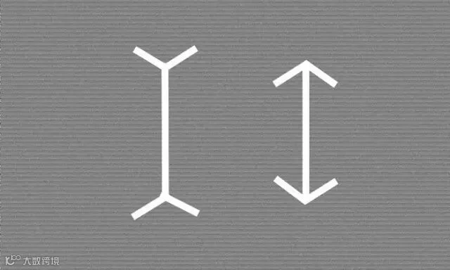 这两条竖线你们感觉哪条竖线会更长?是不是左侧让人感觉上更长一些。其实是这两条竖线是一样长的,只不过因为两端的视觉延展性给人不同的错觉。