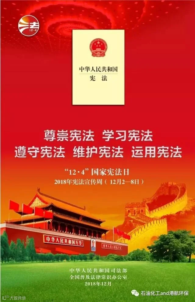石油化工and港航环保2018年12月4日,是我国第五个国家宪法日,同时也是第一个“宪法宣传周”,这次宣传周活动的主题是“尊崇宪法、学习宪法、遵守宪法、维护宪法、运用宪法"。