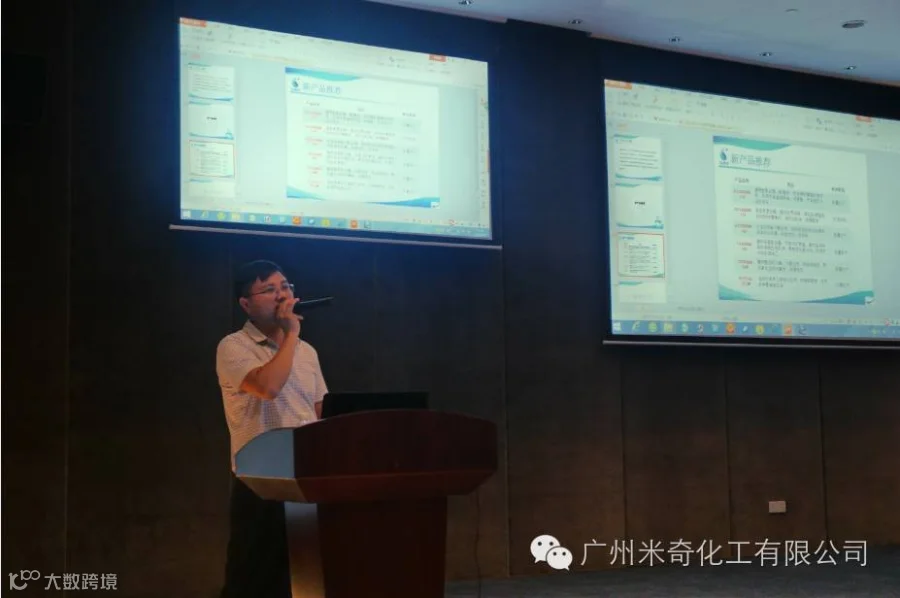 在展会的第三天9月22日,米奇化工紧接着在广州科学城的华南新材料创新园学术报告厅开展了产品推介会。推介会上除了邀约的老客户外还有一些新客户是在展会上慕名而来。