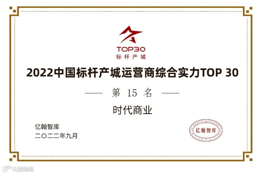 2022年9月15日-16日,由亿翰智库主办的“2022中国产业资源战略峰会”在上海隆重举行。时代商业集团跻身2022中国标杆产城运营商综合实力TOP30(第15位),综合实力排名较去年大幅提升,时代商业集团旗下项目时代·方洲(海珠)荣获“2022中国最具发展潜力产业园区项目TOP5”,产城融合发展和产业生态打造能力再获行业高度认可。