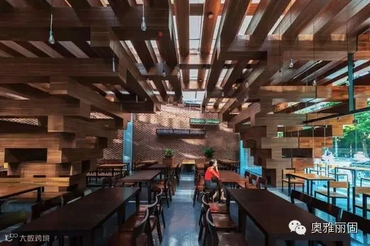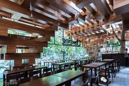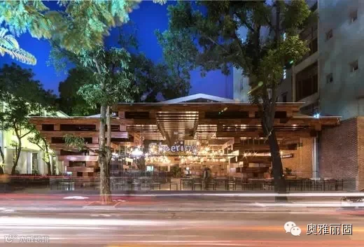 整个建筑是为创建一个舒适,安全,大气美观的餐厅环境,为用户创造了特别的体验,让人们通过空间更加接近自然,空间包含了都市人行道美食文化。