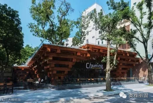 Cheering餐厅是从一个长期荒弃的项目改造而来的,该项目仍然保留了钢架结构以及可重复使用的围护材料,如玻璃、钢材、条钢、金属板屋顶。