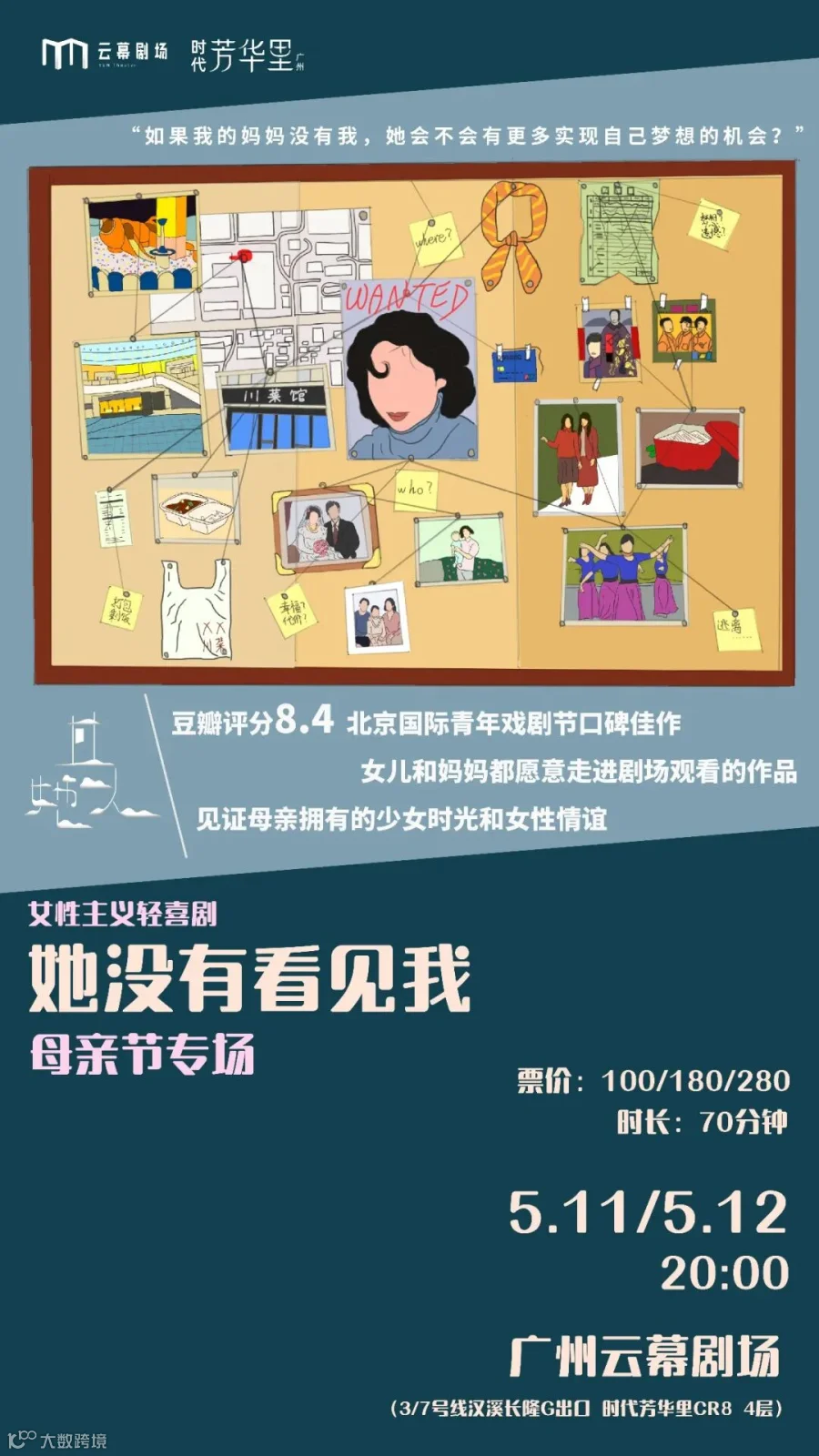 5月11-12日,广州云幕剧场将带来女性主义轻喜剧 《她没有看见我》,欢迎品鉴。