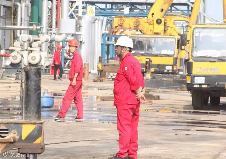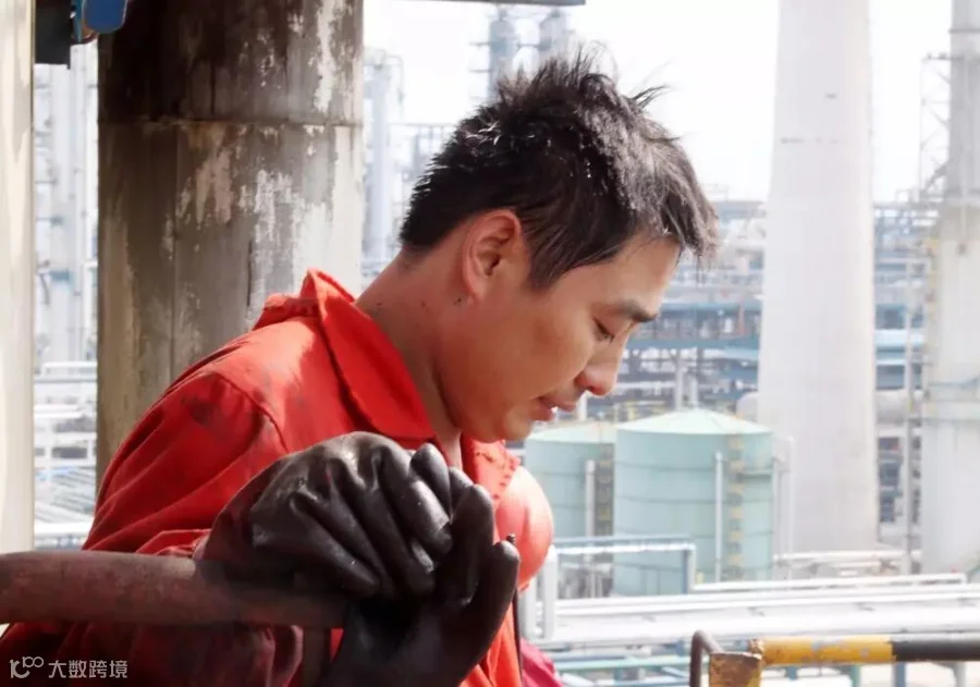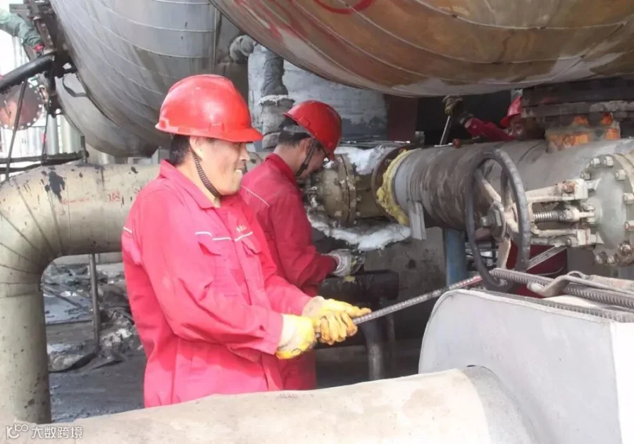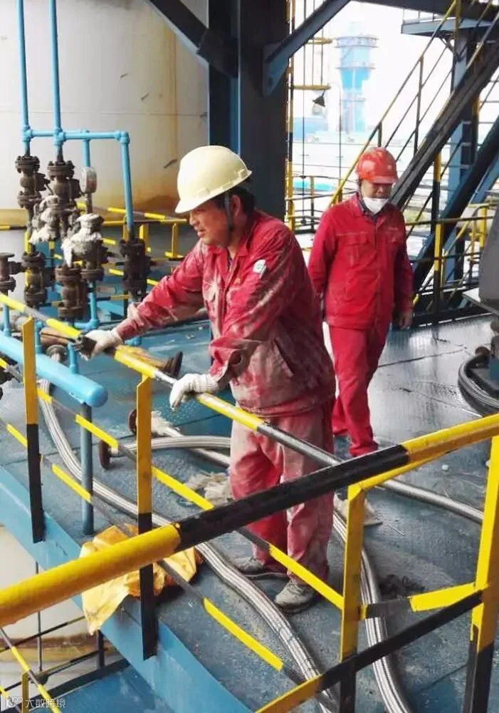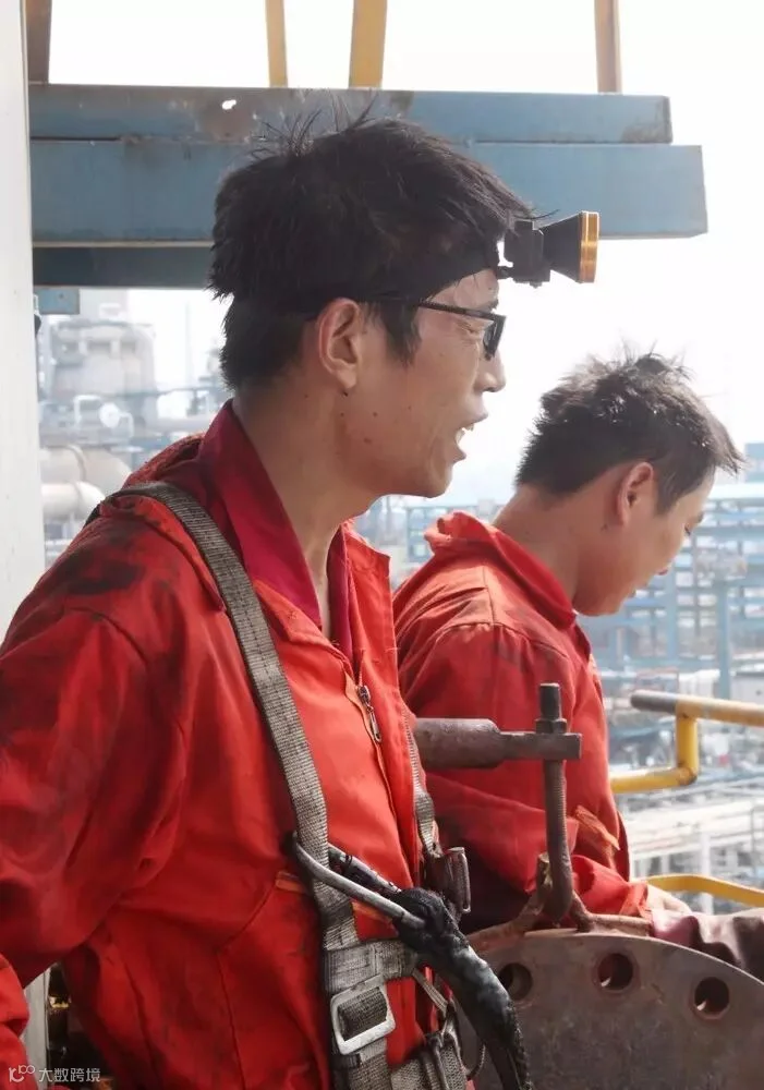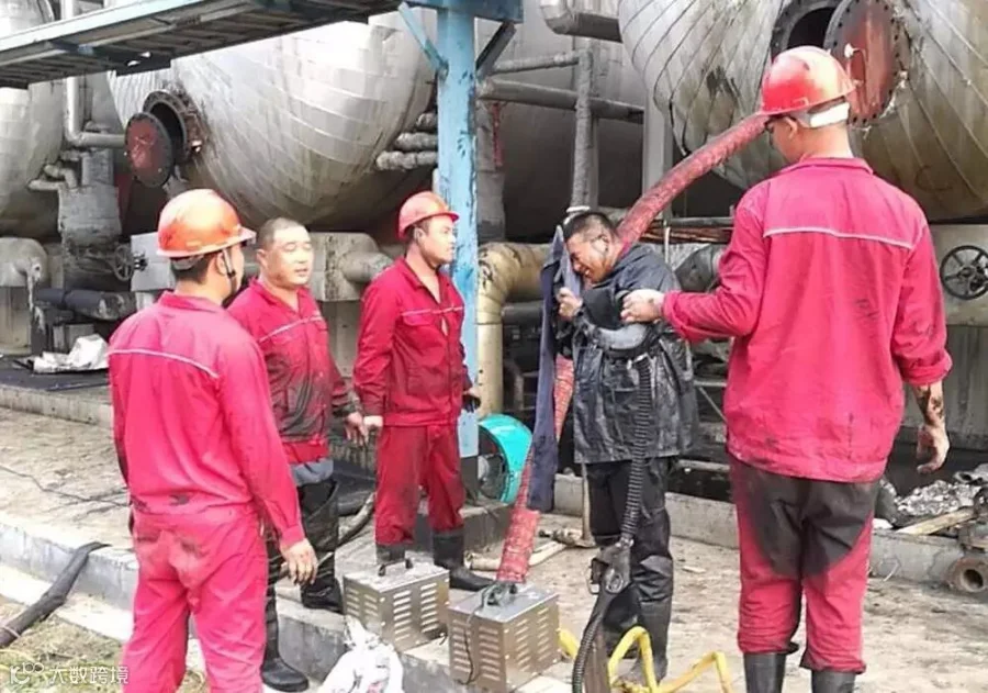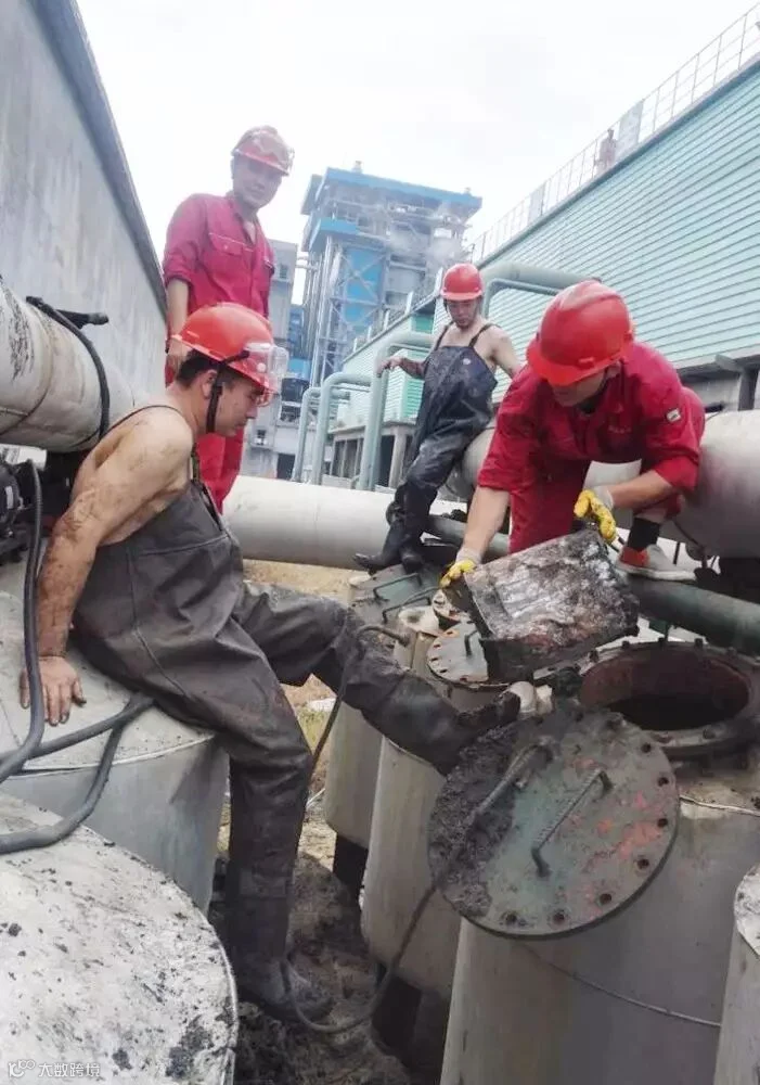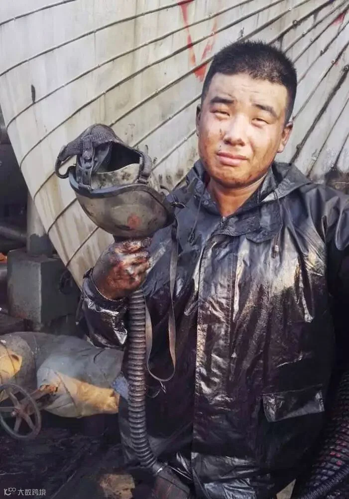 催化车间常减压装置电脱盐罐清理油渣,员工李峰