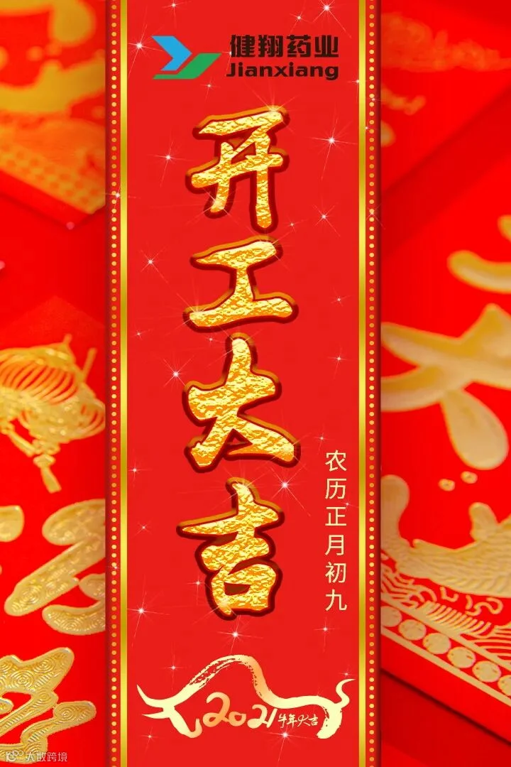 今天是大年初九,健翔药业迎来的牛年的第一个工作日。春。上午9点,随着鞭炮声的结束,浓浓的“年味”即将散去,迎来新一年的奋斗。