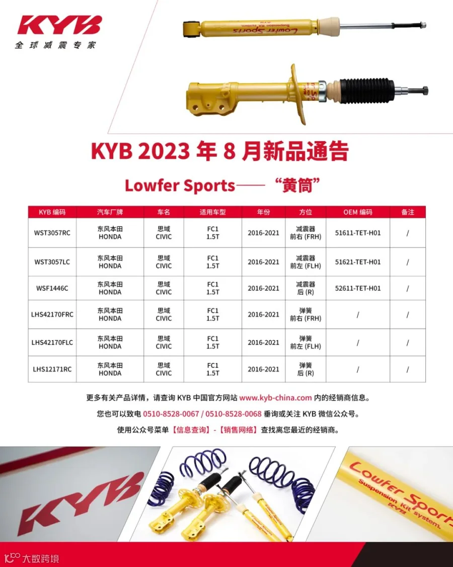 KYB 2023年 8月新品通告(Lowfer Sports) KYB减震器