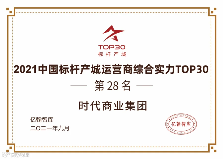 ▲ 时代商业集团获得2021中国标杆产城运营商综合实力第28名