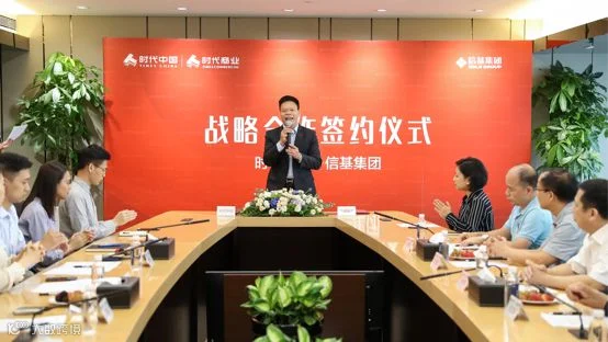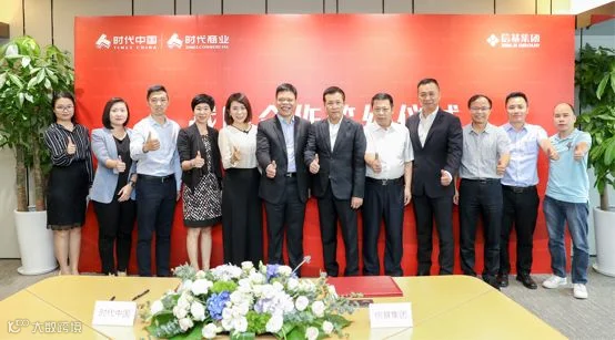 2018年5月24日,时代商业与信基集团举行战略合作签约仪式,双方正式成为战略合作伙伴,将在产业与商业结合的复合型地产领域展开深入合作。时代中国董事会副主席白锡洪、时代商业管理有限公司总经理王媛媛以及信基集团董事长张汉泉共同出席了此次签约仪式。