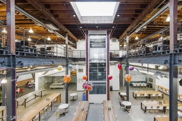 建筑师大胆地将一座近4200㎡的废旧仓库改造成拼趣总部办公室,保留了仓库的原件和构造。