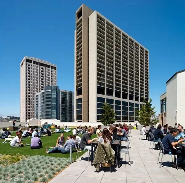 除了办公空间,总部还有瑜伽室、健身中心、游戏室、自助餐厅、户外花园,连到了晚上站在顶层也能眺望旧金山夜景!