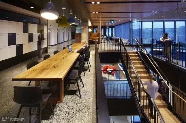 富士通澳大利亚总部。一个中央楼梯,将面积约9000㎡的五层楼空间贯穿,灵动且不用刻意划分区域,随意的氛围更让人放松。