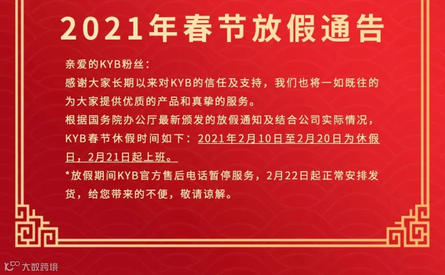导读:KYB 2021新年 放假通告