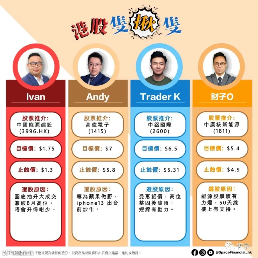 」邀請到Space Finance財經台的嘉賓,推薦一隻心水股票。每週一中午時段,會在社交平