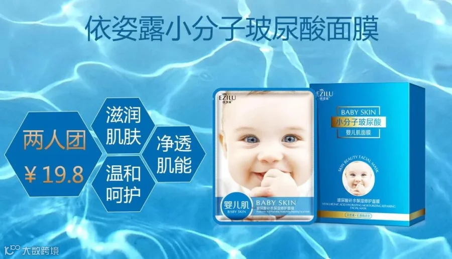 官宣!肌肤水润的秘密,依姿露水分子玻尿酸面膜,现两人团19.8