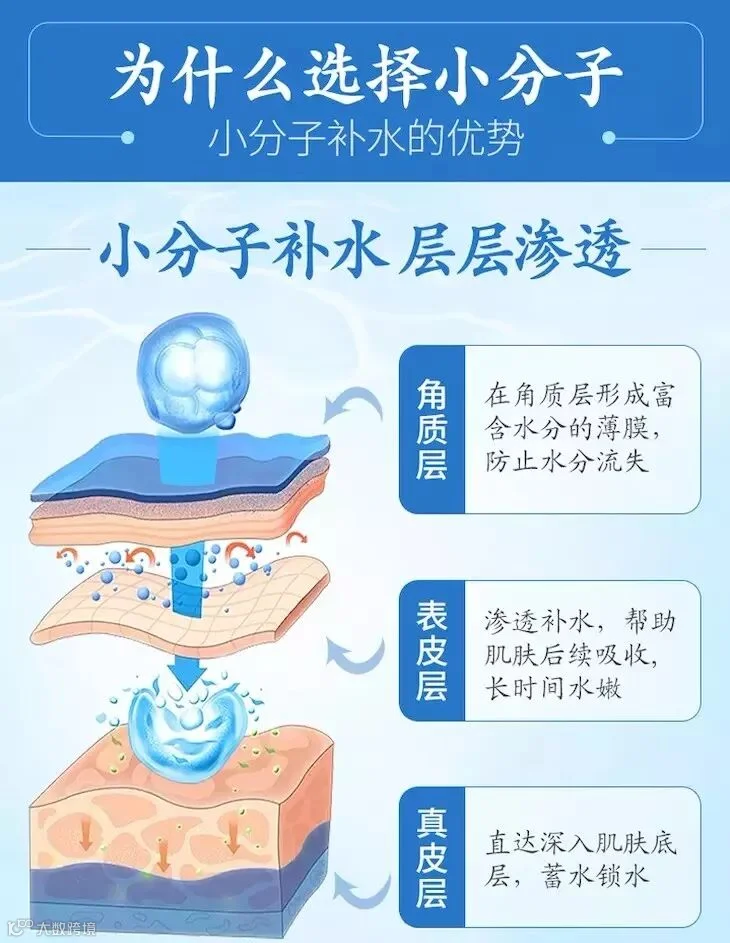 小分子补水层层渗透,滋养肌肤、润泽、温和呵护肌肤,让肌肤健康亮透嫩滑
