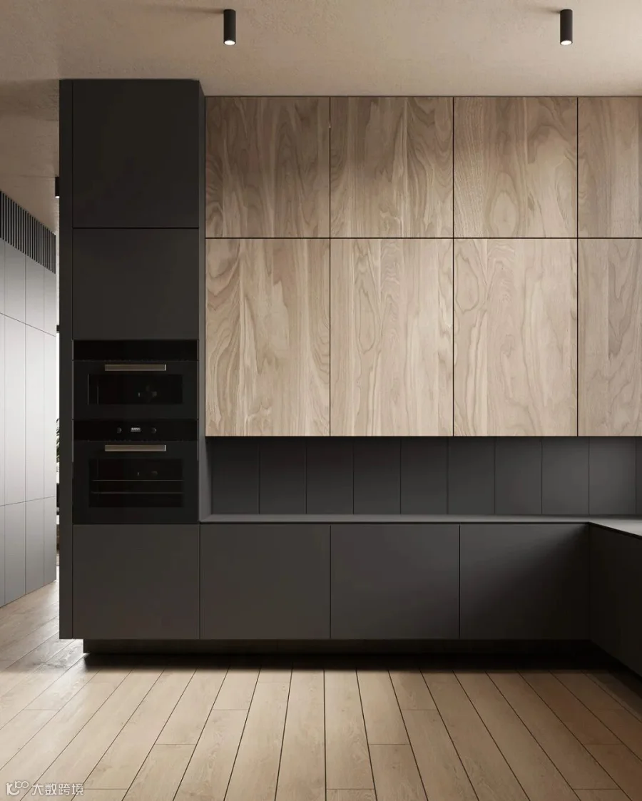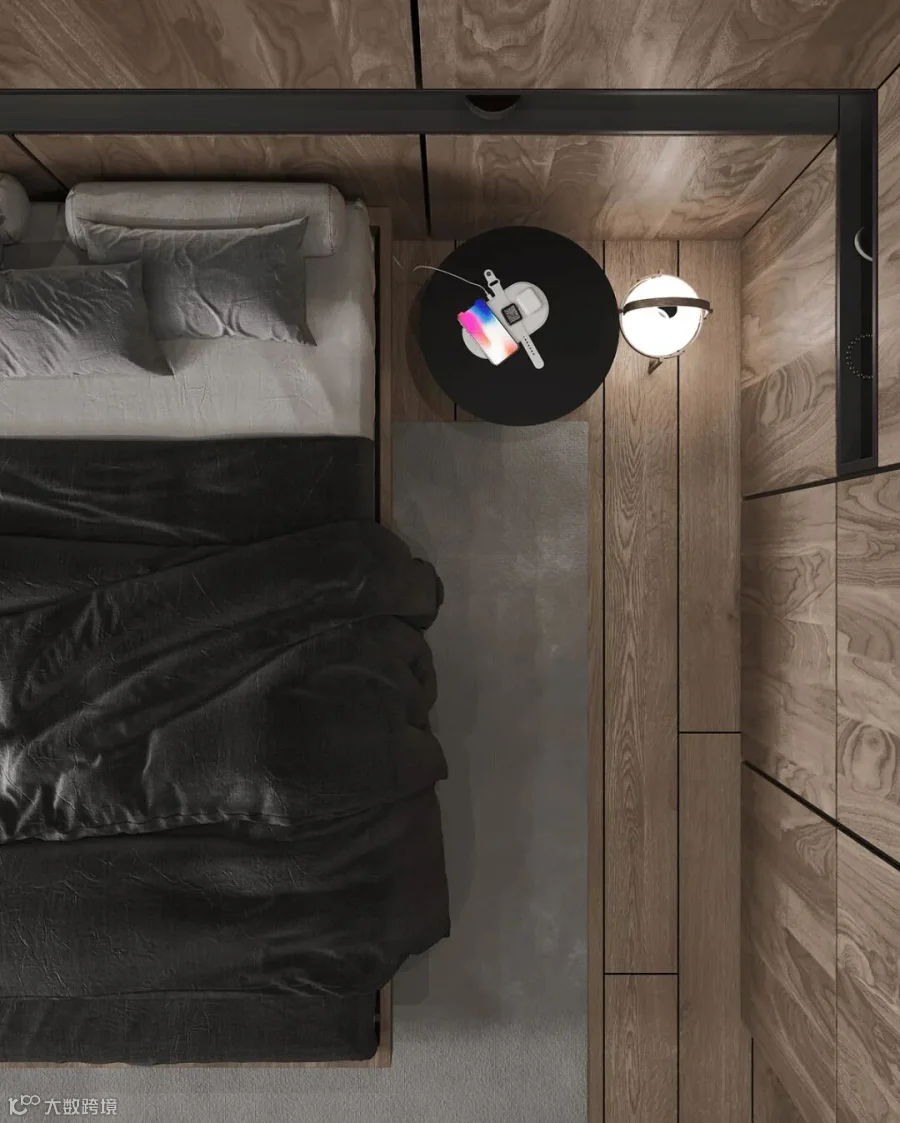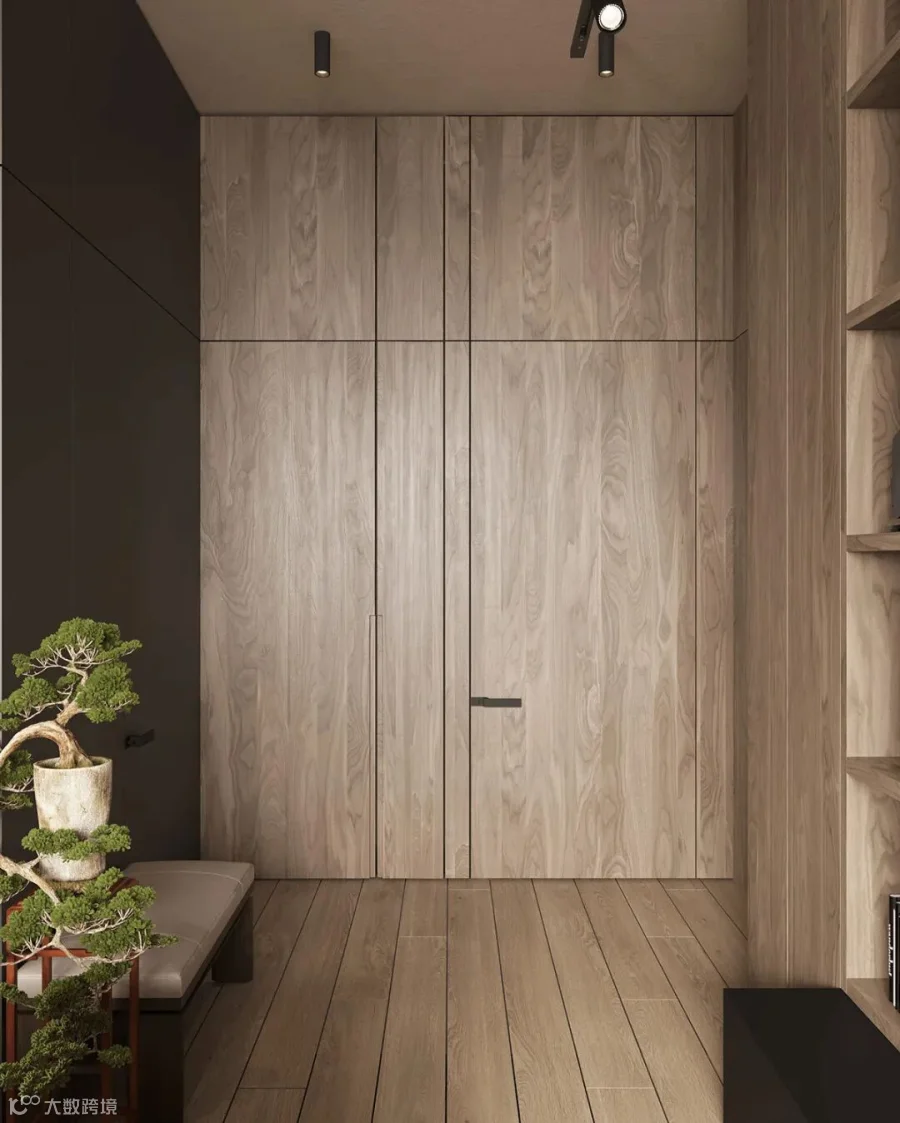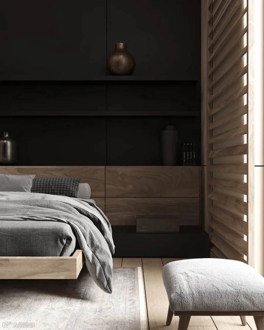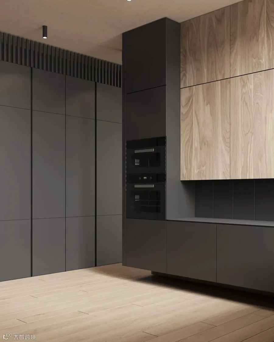 在这间大型豪华公寓中,黑色和木质色调形成了鲜明的对比。从客厅到卧室、浴室和储物空间的走廊,相同的颜色、纹理和材料贯穿每个空间。还有一个漂浮的家具主题,以浮动效果的咖啡桌、浮动的厨房。感受别样的宁静深幽,享受远离喧嚣的恬静。