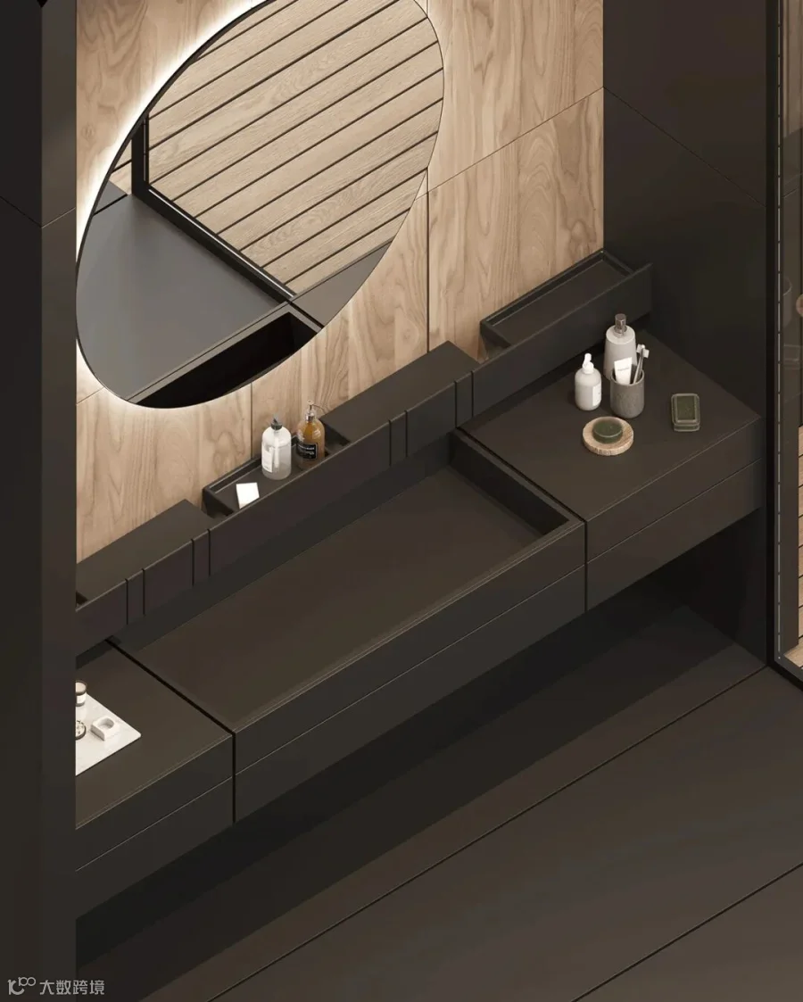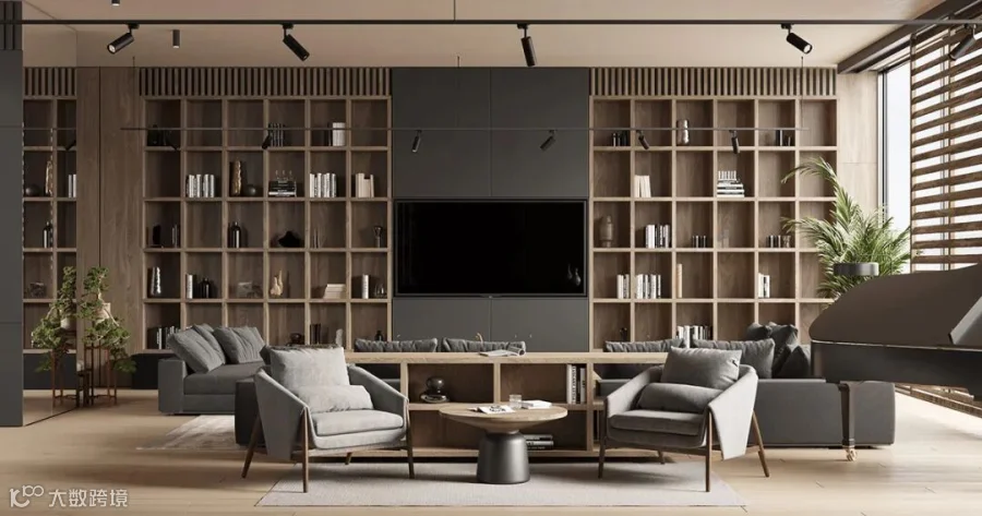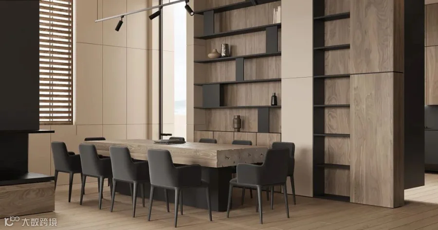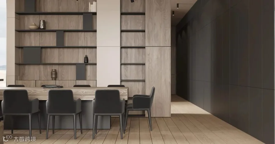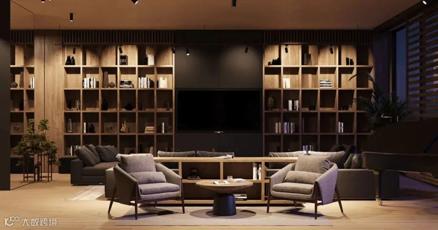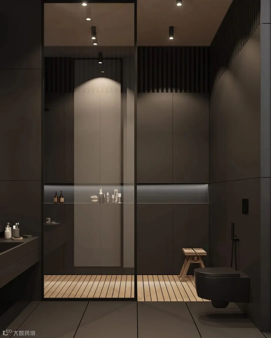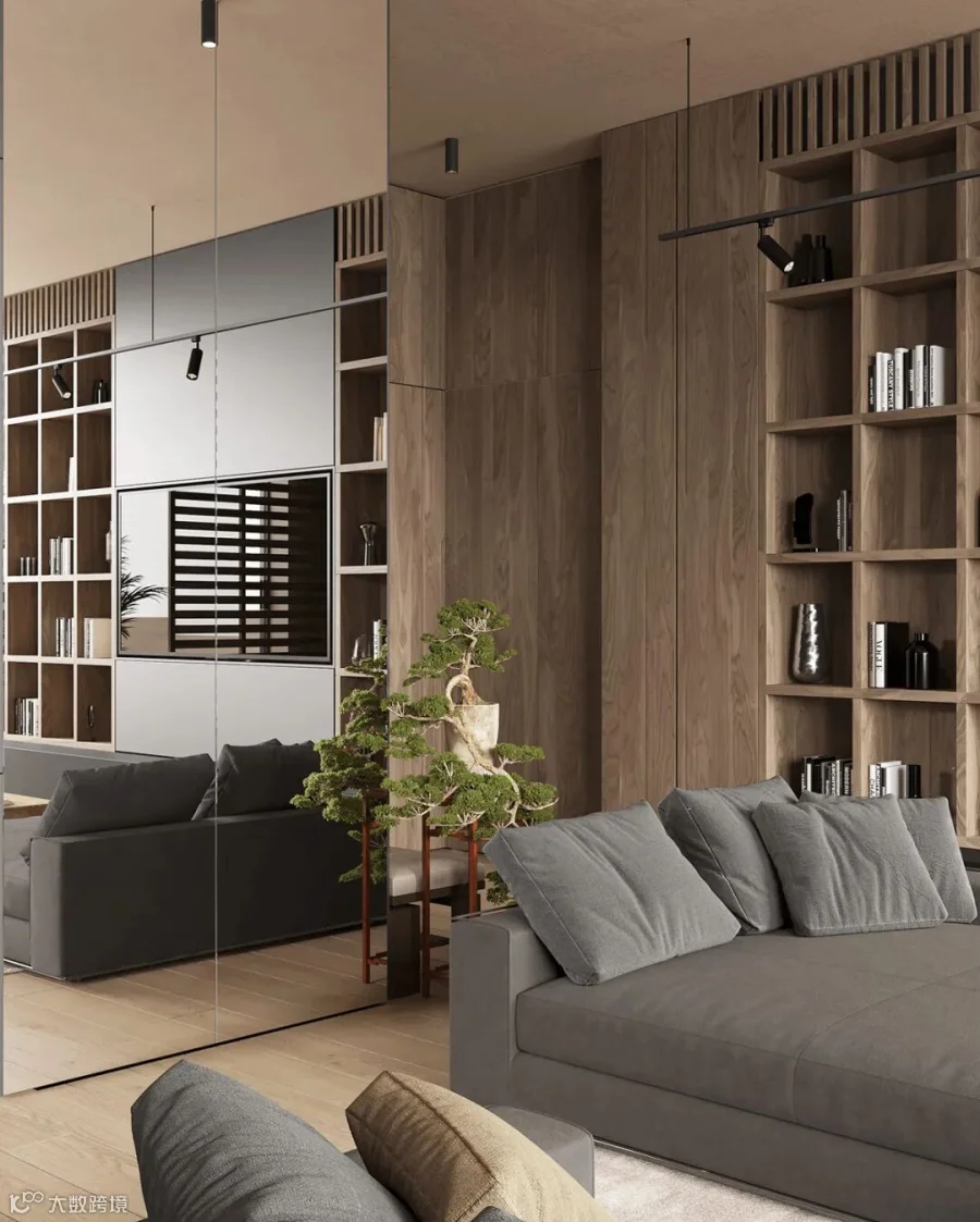在这间大型豪华公寓中,黑色和木质色调形成了鲜明的对比。从客厅到卧室、浴室和储物空间的走廊,相同的颜色、纹理和材料贯穿每个空间。还有一个漂浮的家具主题,以浮动效果的咖啡桌、浮动的厨房。感受别样的宁静深幽,享受远离喧嚣的恬静。
