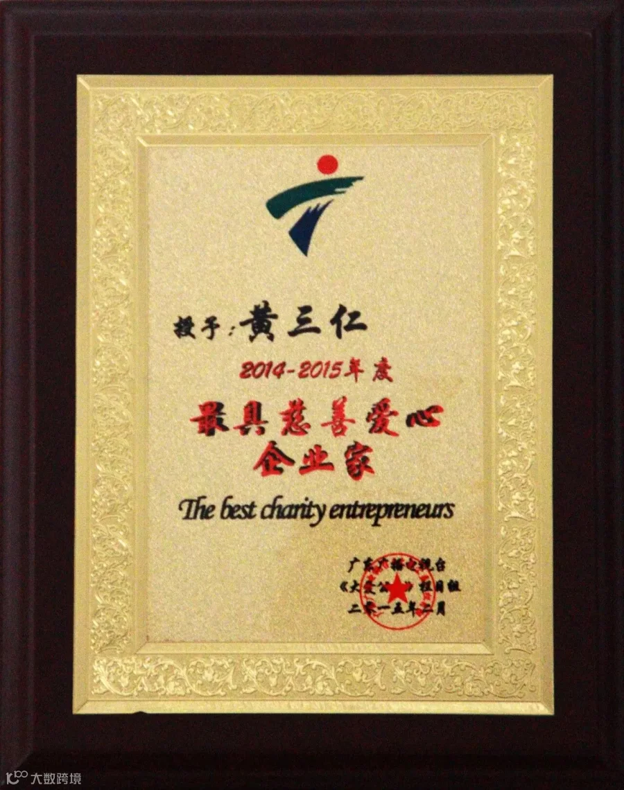 2014年,他被广东广播电视台评为“最具慈善爱心企业家”。