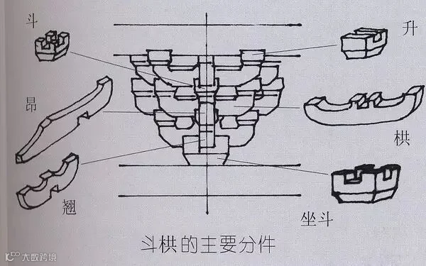 斗拱,又称枓栱、斗科,是汉族建筑特有的结构,早在战国时代,就出现了斗拱的雏形。