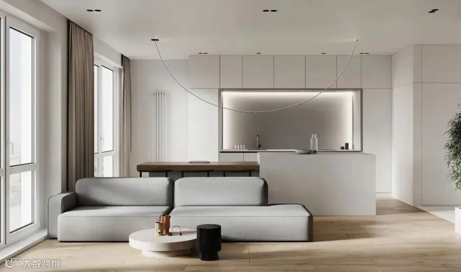 客餐厨采用开放式布局,实现屋主期盼的宽敞起居动线。