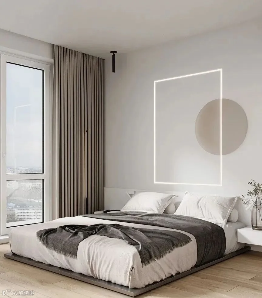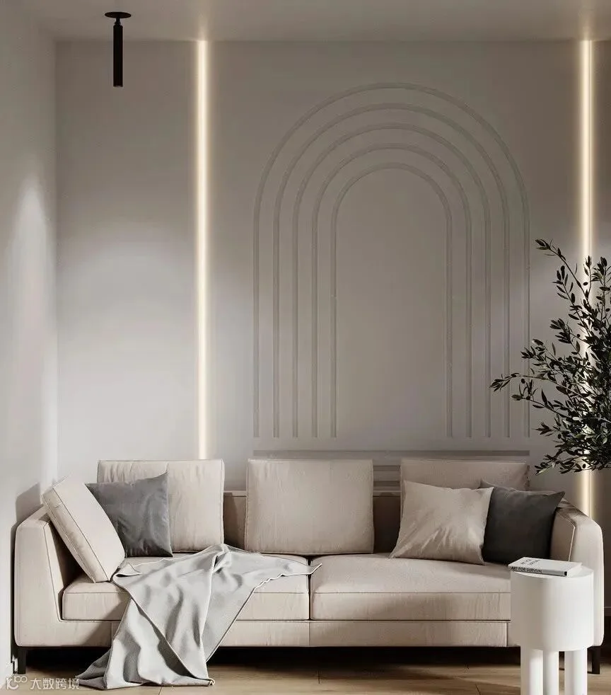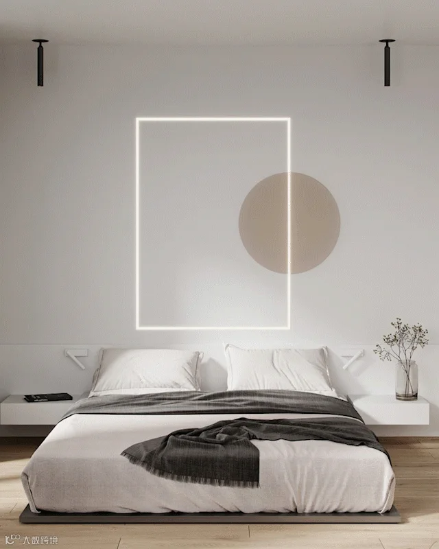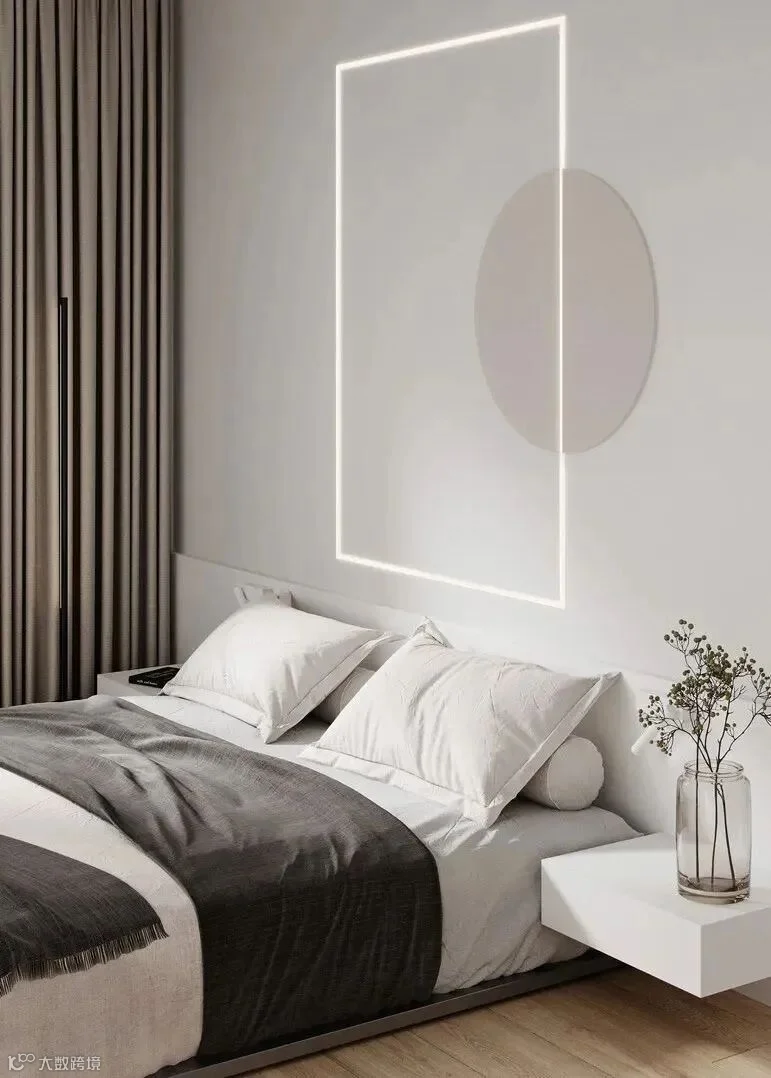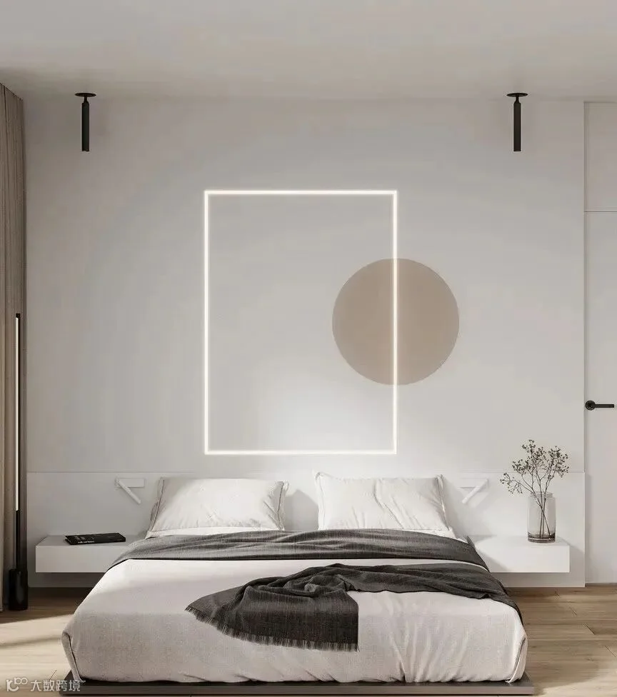 圆形图案与简约灯带相结合,形成富有律动的诗意背景墙,层次分明。