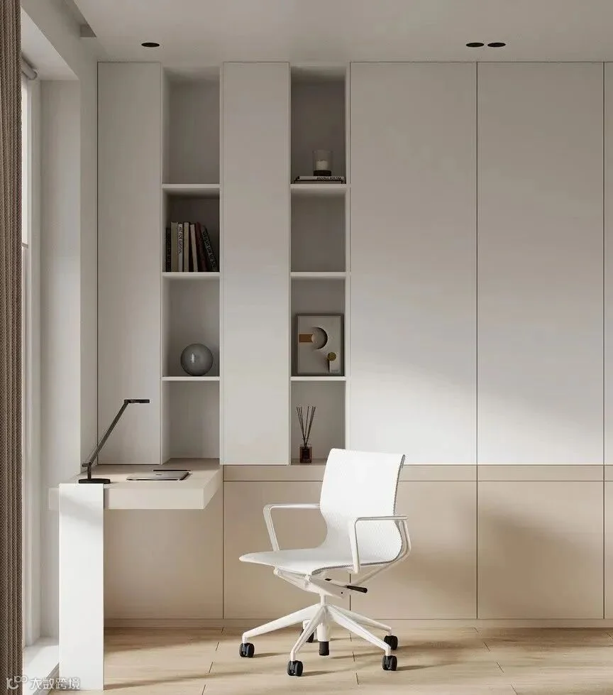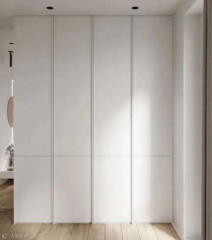 经过线性切割的纯白衣柜流露出十足肌理感。