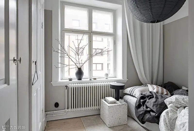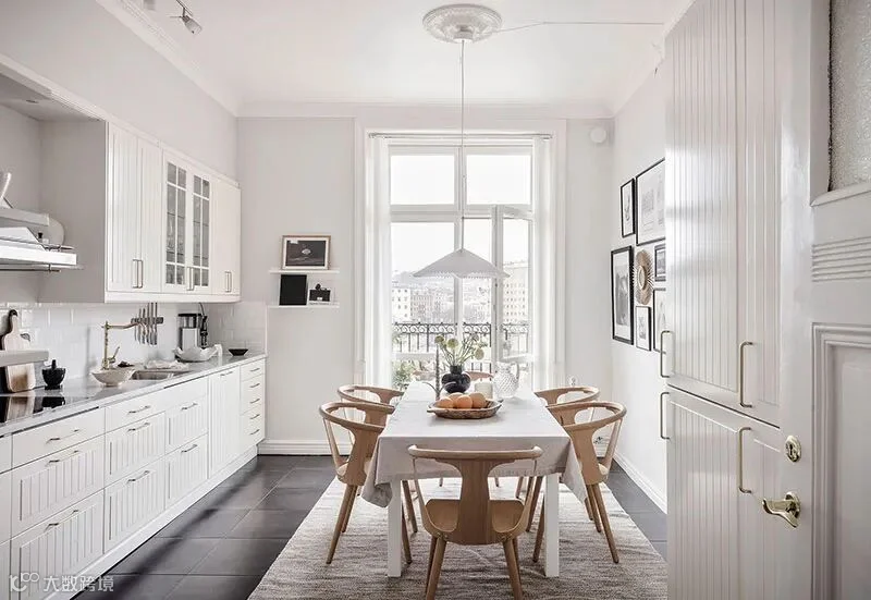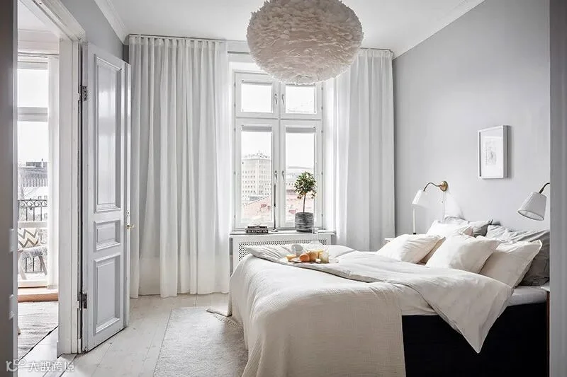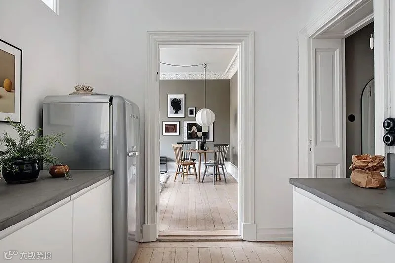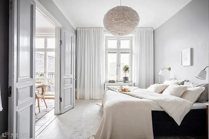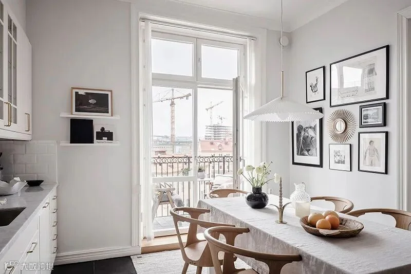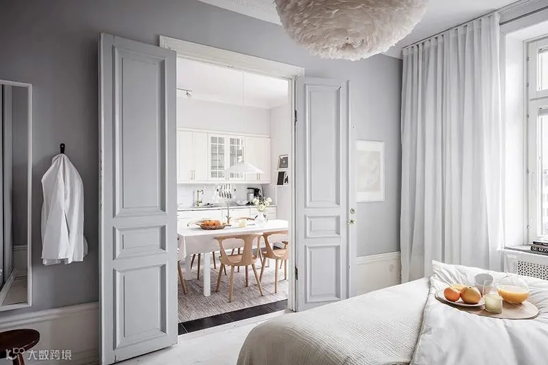 这间公寓的设计注重白色和自然采光,空间非常安静,室内装饰几乎完全是白色的,镜框墙面装饰和精致的纺织品为生活增添了必要的元素。