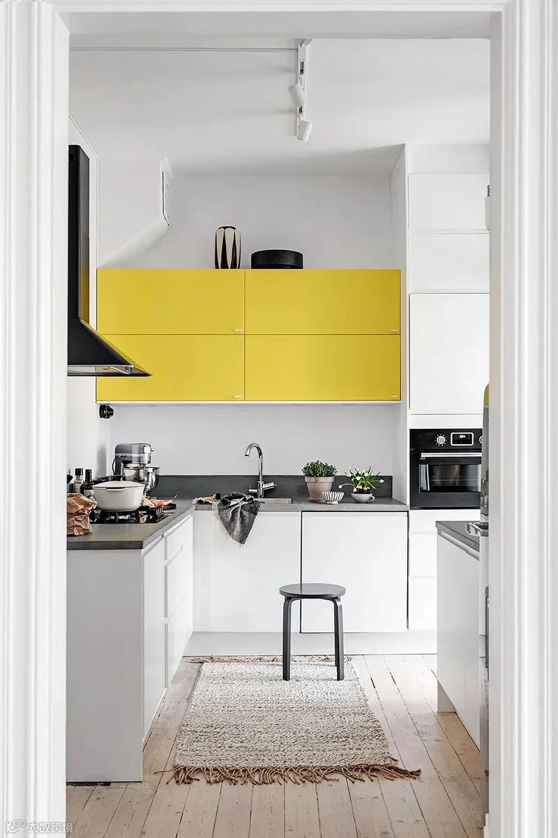 每个房间都有自己独特的形式,客厅时尚而优雅,厨房的颜色选择令人惊讶(黄色与白色橱柜组合在一起),并且是一个贯穿式房间,可以从客厅到卧室。卧室很小,似乎不超过7-8平方米。