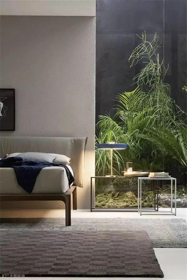 绿植具有很好的舒缓效果,但是也不能盲从随意挑选,记得不要选择那些娇嫩需要精心护理或者味道会变化的花草。盆栽树或者玻璃容器里的植物都是禅意家居空间里常见的装饰选择。同时石头、竹子、木材、细石这些组合会散发出朴素的气息,给人带来朴素的感觉。
