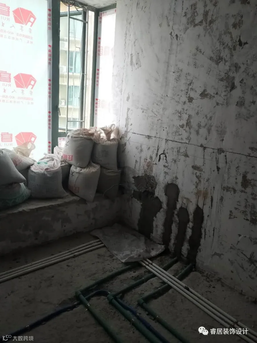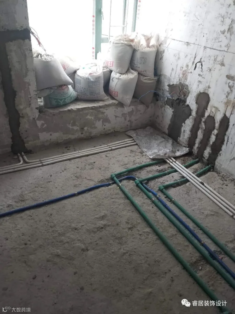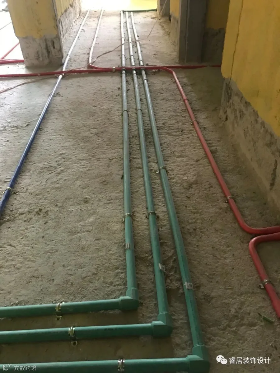 水电施工环节,工匠在水平激光定位之后进行现场放样,并切割地面进行开槽。