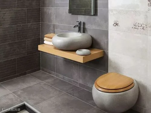 浴室空间本不是很大,所以尽量主颜色不要超过三种,否则容易产生视觉疲劳,所以当卫浴三件是浅色的情况下,浴室瓷砖可以选择深色、暖色系,若三件套是深色,就可以考虑选择浅色或同类色瓷砖搭配。