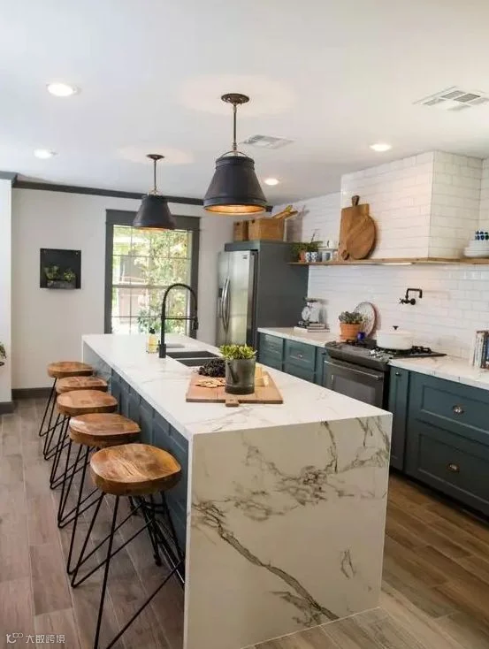关于橱柜,发现大家都会关心一个问题:为啥这些橱柜台面什么材料都有,而我们选来选去不是石英石就是不锈钢?