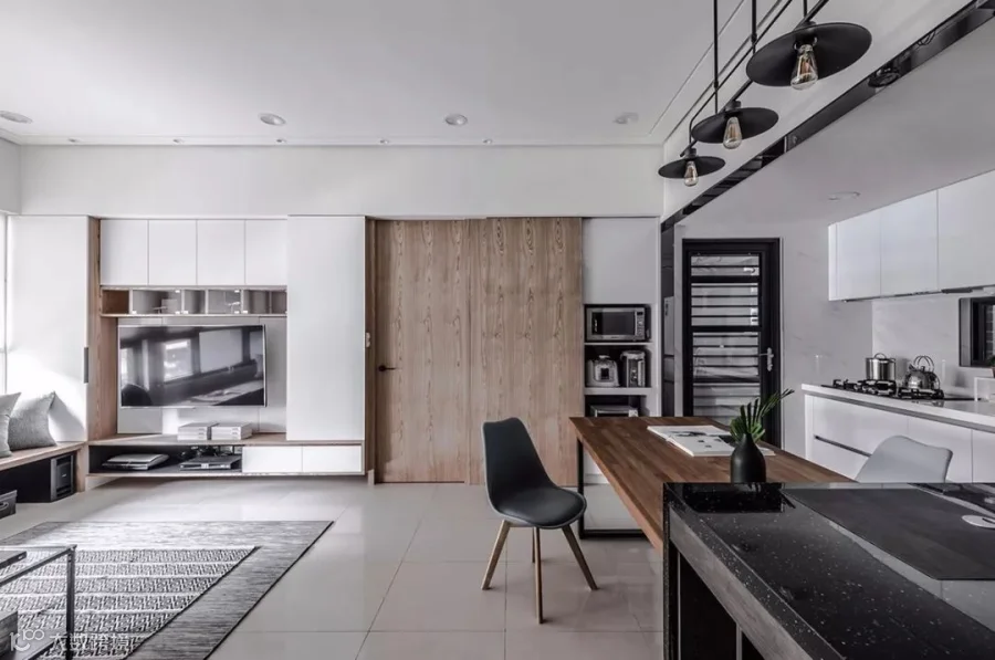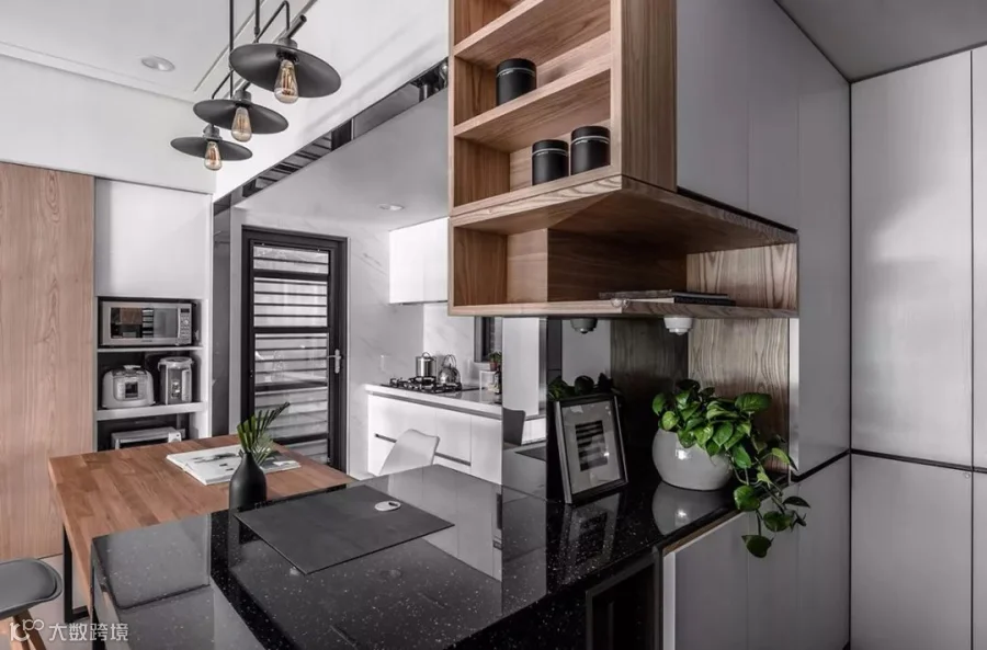 至简的线条设计,没有一处多余的修饰,你千万别以为这是没有追求,因为黑色 灰色的世界中,那一抹亮眼的木色,足以表达卓尔不群的个性。