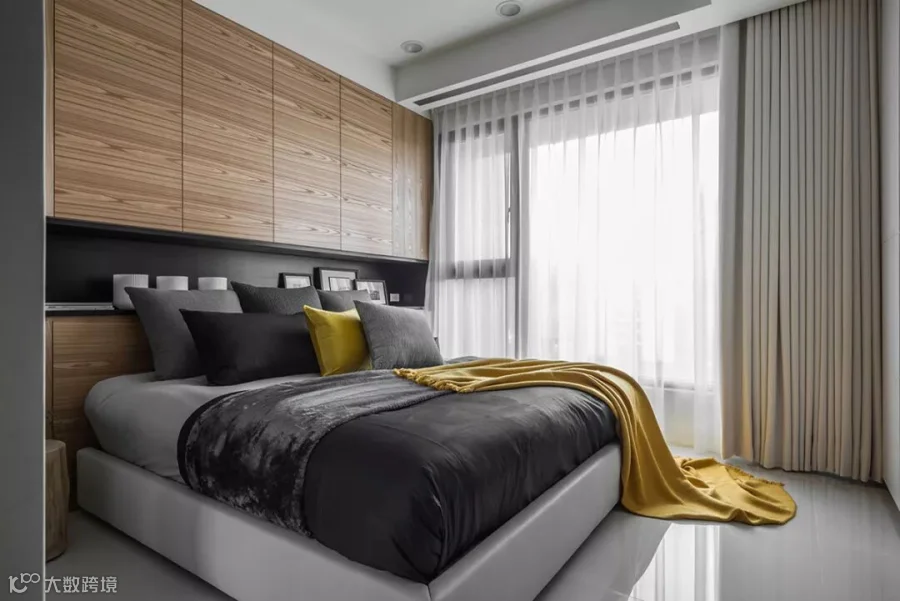 细水长流的生活,也要有偶尔的一次精彩绝伦,有层次的陈列营造了唯美的视觉画面,极简现代的卧室。