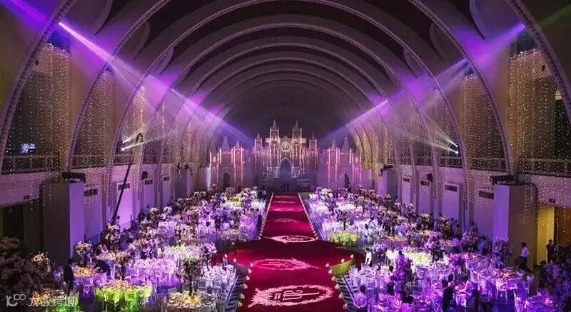 上海展览中心,懂行的都知道,是上海市中心最大最气派租金最贵的场地。ah一共办了72桌,请了600多个来宾。