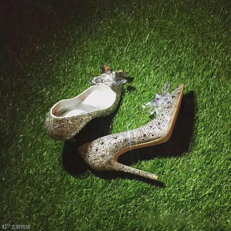 婚鞋更加公主了,是今年Jimmy Choo的灰姑娘水晶鞋