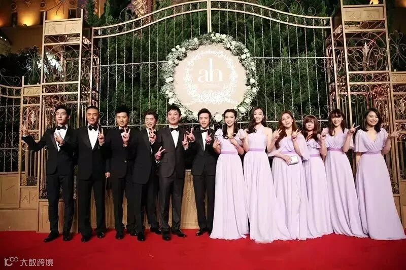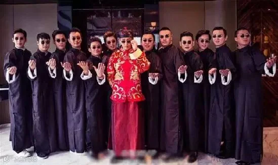 正式的伴娘伴郎的数量也很庞大,每一个人有两套衣服,一套中式一套西式。