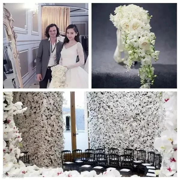 有城堡就得有花园。婚礼的花艺是全世界数一数二的,花艺师是野兽派花店的艺术总监Eric Chauvin,他带领了200个中法花艺师团队,把上海婚礼场地装扮得像梦境一样浪漫,取名叫做公主伊甸园,应该是中国目前为止规模最大的婚礼花艺布置。