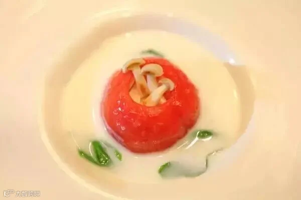 晚宴有100个厨师做的,名字都起得很吉利,比如天作之合是鲜松茸配顶级和牛肉,情深似海是冲汤活海参。不过教主说其实自己没有很有钱,所以青岛大虾是不会出现的。