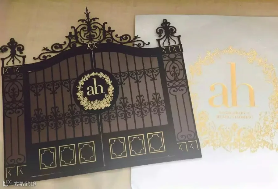 贺卡封面是黑色大门,封套上是“ah”的烫金字体。