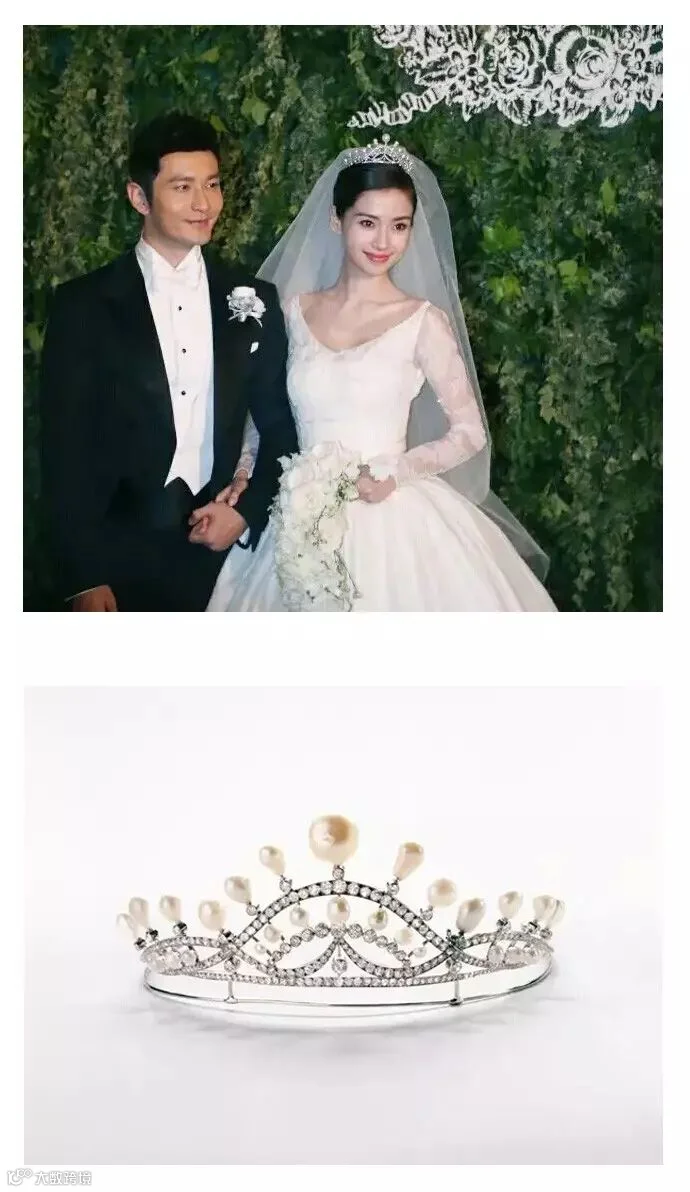 Baby戴的是一顶Chaumet古董孤品珍珠钻冕。这顶皇冠收藏在巴黎总部,是非卖品,它有一百多年的历史,是Chaumet第四代传人Joseph Chaumet创作的。Chaumet破例把它借给ah~