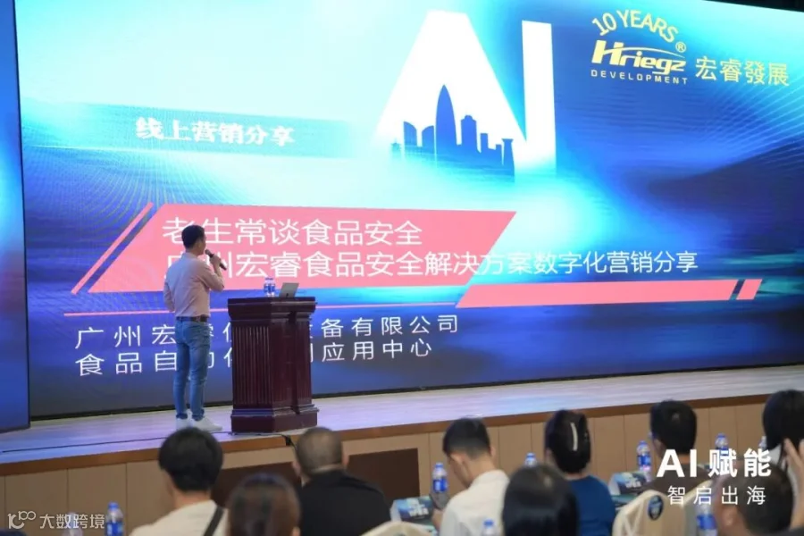 近日,由中企动力科技有限公司主办、Google、Yanex、TikToK协办的“AI赋能,智启出海”2025全球企业增长大会在中国深圳盛大举行,此次峰会吸引了近千人参加,我司受邀参加并作为嘉宾分享《老生常谈食品安全|广州宏睿食品安全解决方案数字化营销案例》。