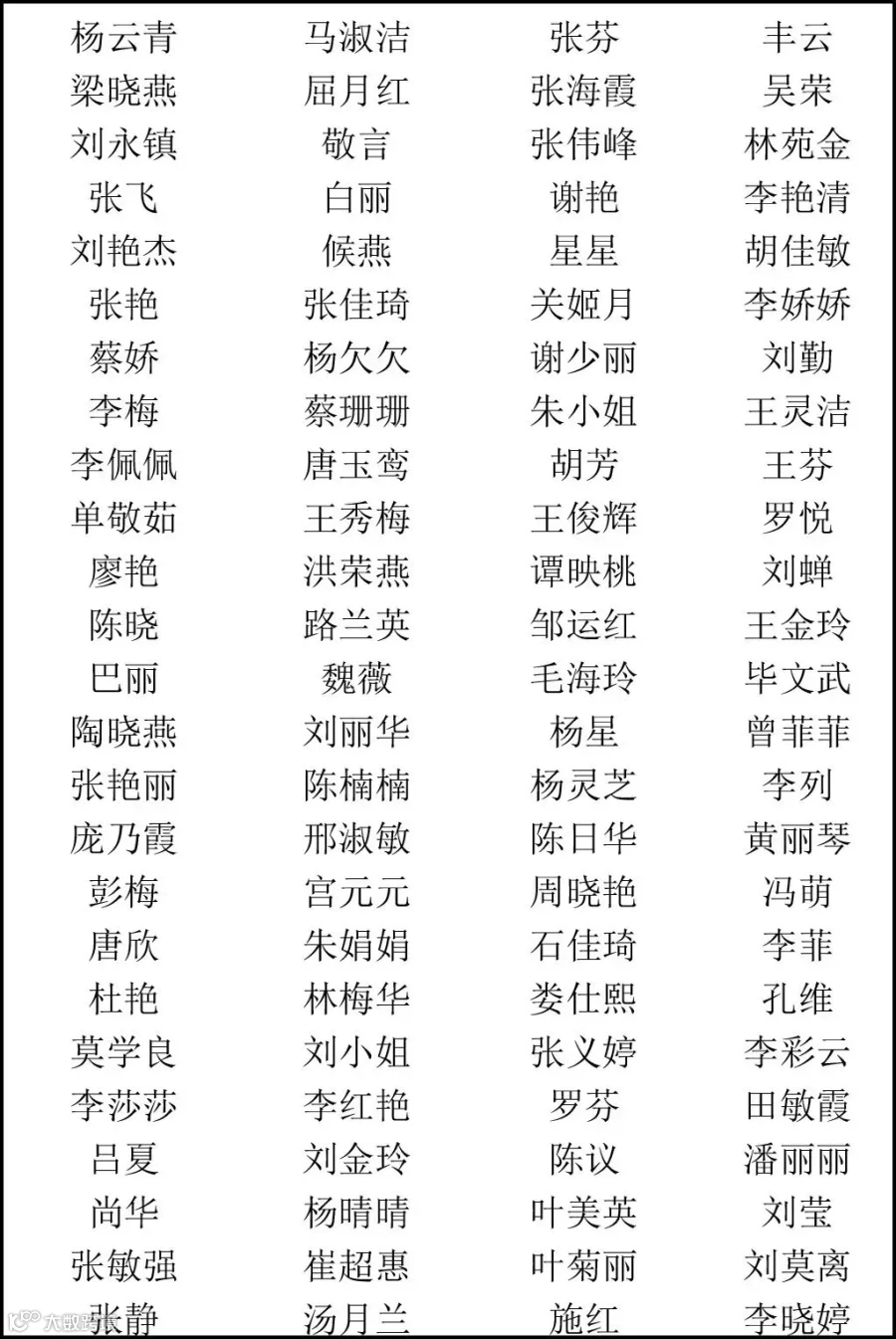 100名小伙伴名单(姓名不分先后):
