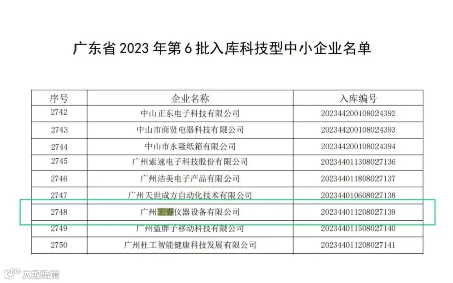 近日,广东省科学技术厅官网公布了2023年第六批科技型中小企业的入库名单,其中广州宏睿仪器设备有限公司(简称“广州宏睿”)成功入库并获得“科技型中小企业”认定,这也是广州宏睿第三年获得“科技型中小企业”的认定。