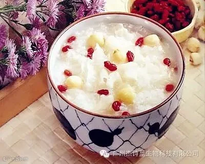1、冰糖芝麻银耳羹 材料:黑芝麻30克,银耳和冰糖各20克,黑芝麻去杂质再炒香。 制作方法: (1)、银耳用温水浸透,去掉蒂头撕成片;冰糖打碎成屑。 (2)、把冰糖、银耳、黑芝麻同放入炖锅内,加清水500毫升,置武火上烧沸。 (3)、再用文火炖煮35分钟,就可以食用啦! 2、桂花银耳炖雪蛤 材料:桂花、银耳冰糖各20克,10克的雪蛤。 制作方法: (1)、把桂花洗净去杂质;银耳用温水发2小时,去蒂头、杂质,撕成瓣;雪蛤用温水发透,洗净并剁碎;冰糖打碎成屑。 (2)、把桂花、雪蛤、冰糖、银耳同放炖锅内,加入500毫升的水,用水煮沸,然后用文火炖煮35分钟左右,等稍微等一下就可以拿出来食用了。 3、白芷冰糖饮 材料:白芷、冰糖。 制作方法: (1)、把白芷浸泡一夜,要做的时候再拿出来切成薄片。 (2)、把冰糖打碎,将白芷和冰糖同放炖锅内,加入500毫升的清水,用大火烧沸,再用文火炖30分钟左右就OK了。