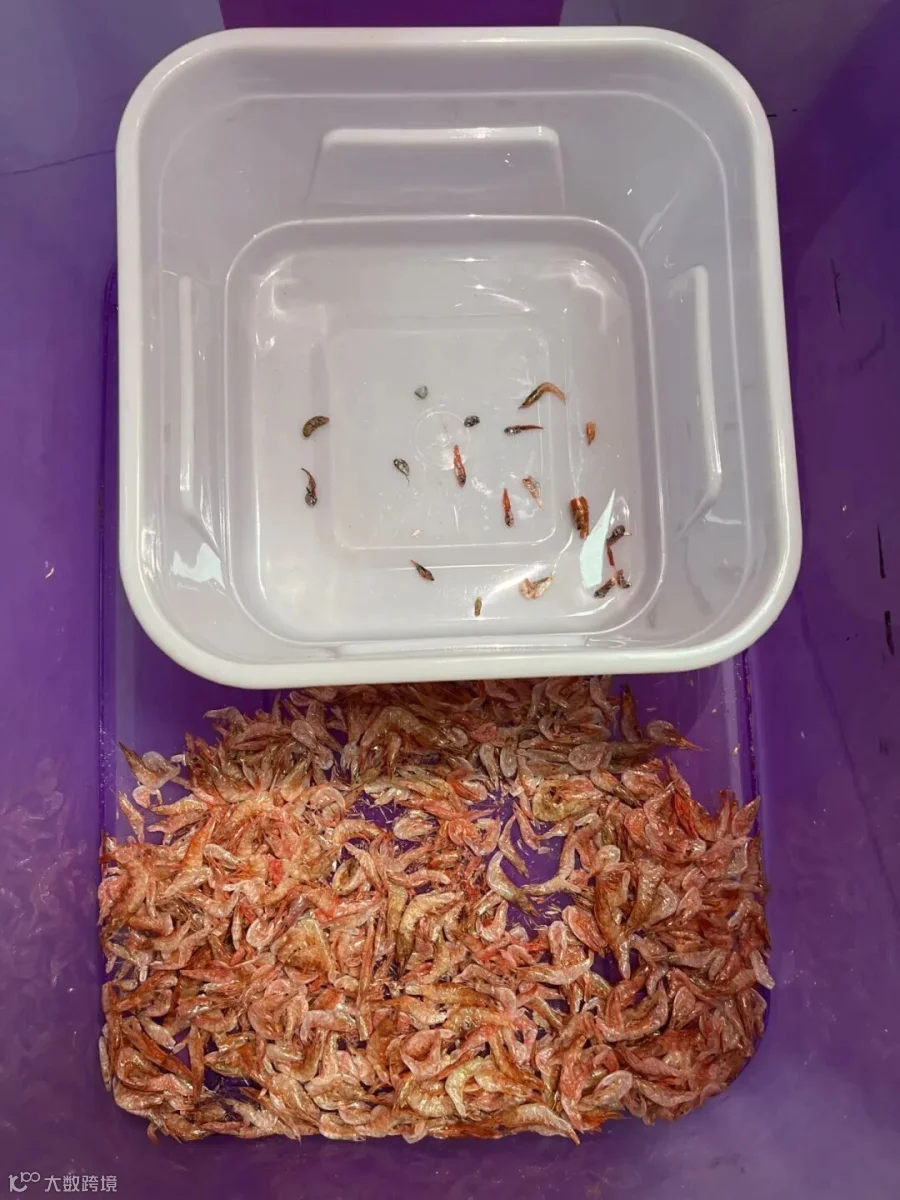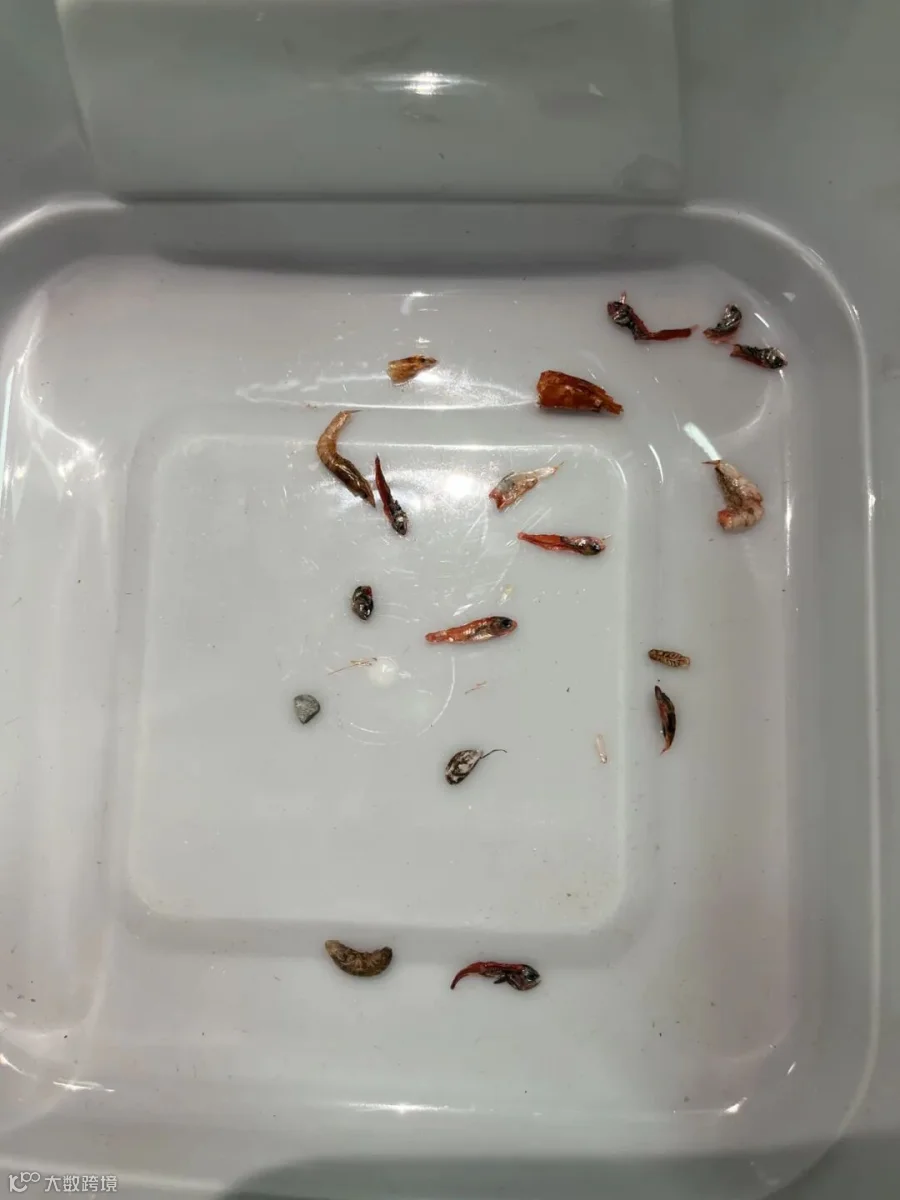 项目一测试的样品是虾米原料,使用检测设备是瑞士布勒的DA系列色选机,测试目的是挑选原料中可能含有的杂物(小鱼仔,长条细海鱼,深色海虫,蟹腿,小木棍,黑色异物,编织袋绳子等)。