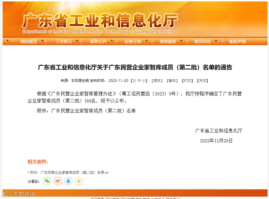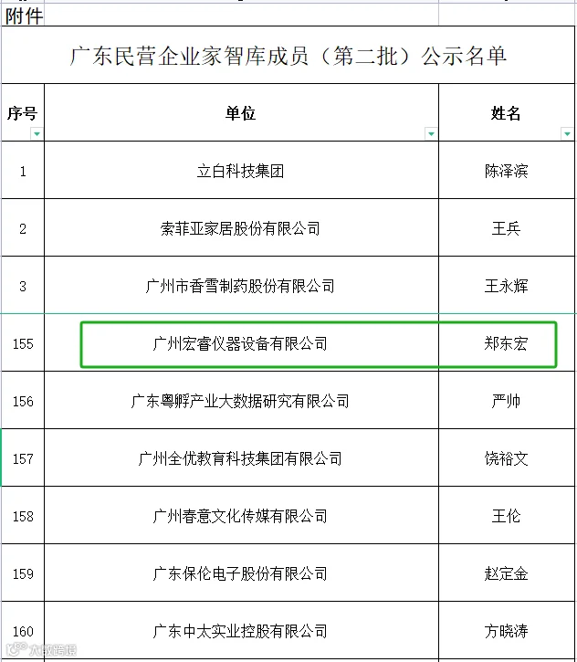 11月广东省工业和信息化厅正式公布第二批《广东民营企业家智库成员》名单,广州宏睿仪器设备有限公司法人郑东宏成功入选为广东民营企业家智库成员。
